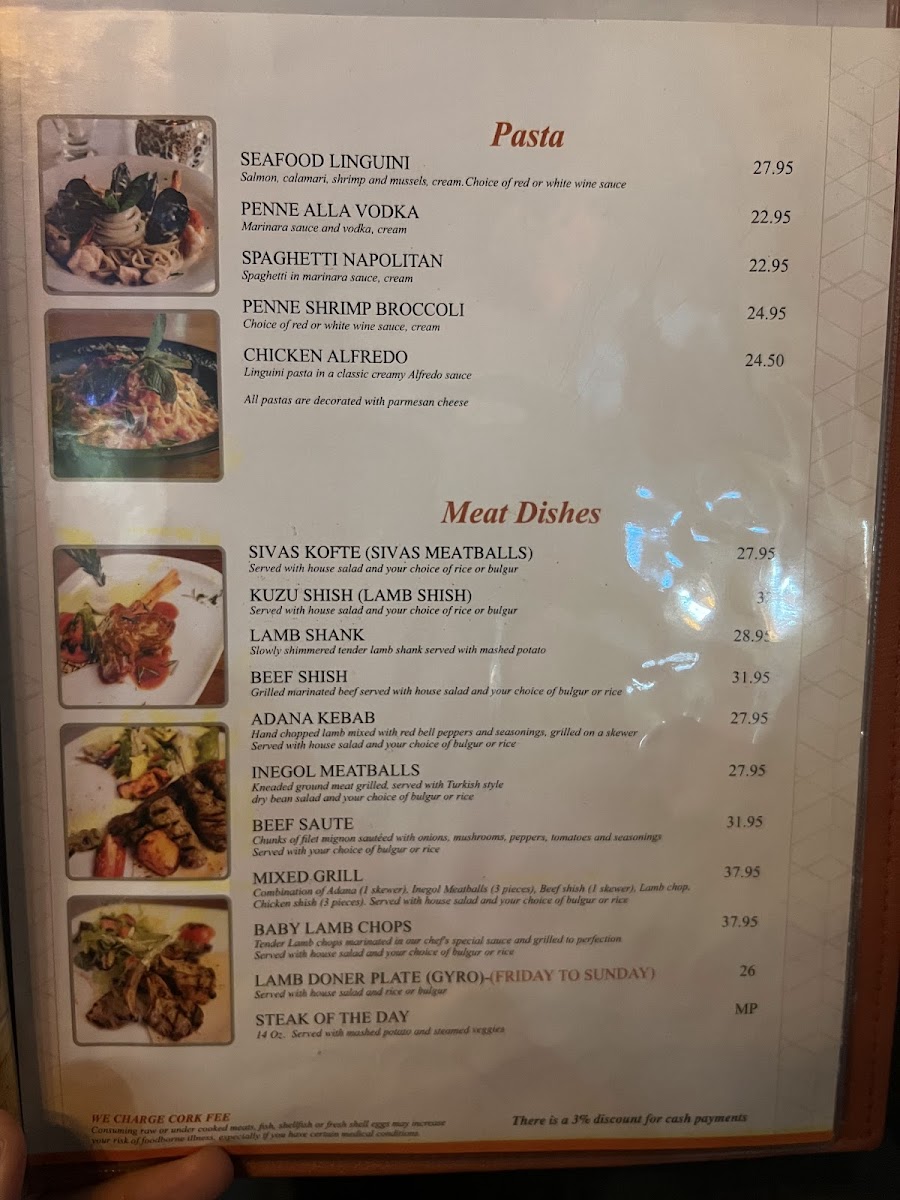 The menu is a delightful array of options, showcasing classic dishes that highlight the essence of Turkish gastronomy. Indulge in the buttery, savory Beef Shish, where perfectly marinated cubes of meat are grilled to tender perfection, tantalizing your taste buds with every bite. If you’re in the mood for something creamy and comforting, try the Penne Alla Vodka, a rich pasta dish that envelops your palate in a velvety sauce bursting with flavor.