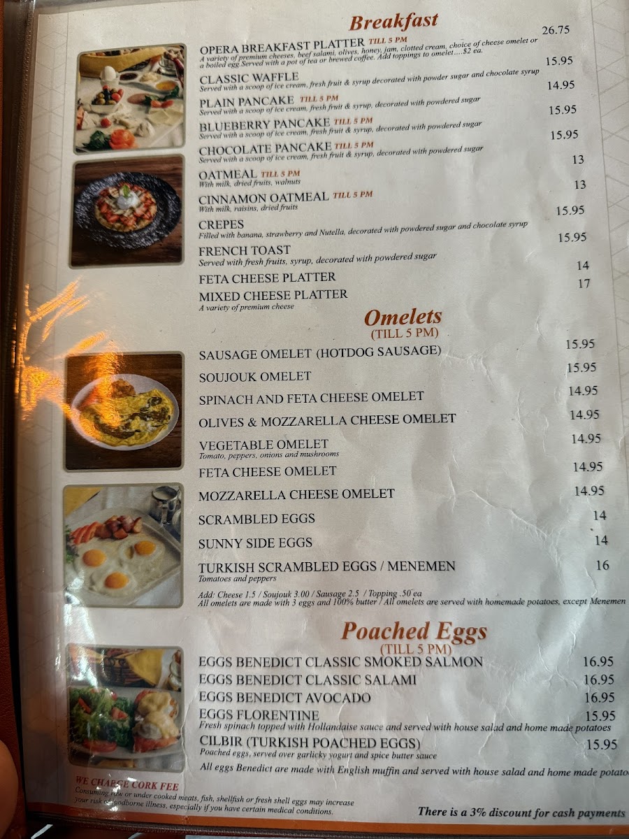 At Opera Cafe Lounge, the atmosphere is effortlessly inviting. With spacious indoor seating and a charming outdoor area adorned with a tent for seasonal dining, you'll find the perfect spot to relax and enjoy a meal with family or friends. The vibe is friendly and casual, making it an ideal setting for a leisurely brunch or an energetic family dinner. The staff is consistently praised for their warm hospitality, as evidenced by testimonials from satisfied patrons like Nata T., who noted, “People there are so friendly and helpful,” contributing to an overall great dining experience.